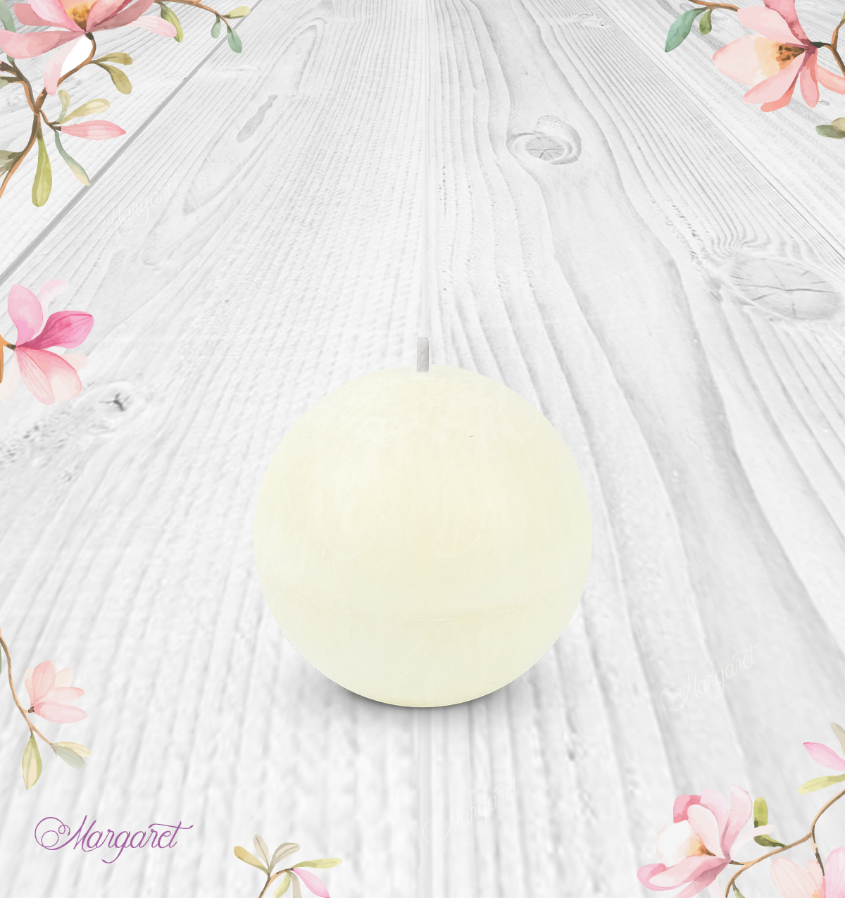 Svíčka Koule malá – Bílá / Svěží bavlna / Květinka